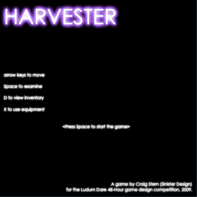 The bad news is, the Ludum Dare competition pulled me away for a couple of days. The good news is, I’ve made another free downloadable game for you to play: Harvester!